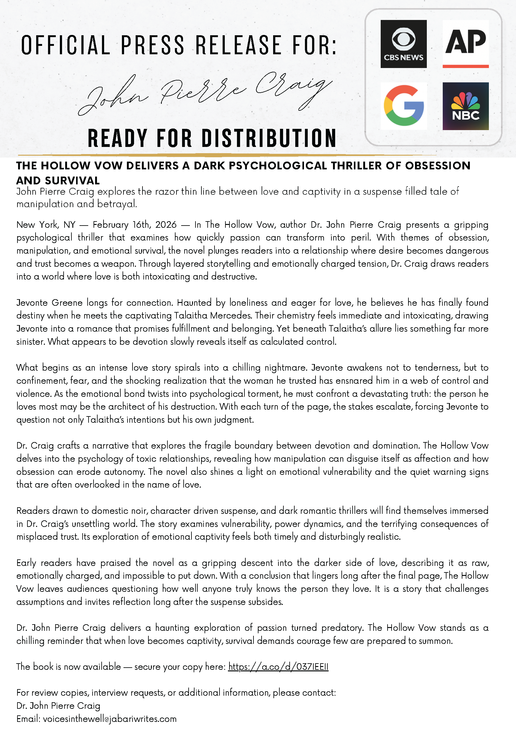 Official Press ReleaseThe Hollow VowJabari WritesFeb 17, 2026614ShareThe book is now available—secure your copy here.PreviousNext